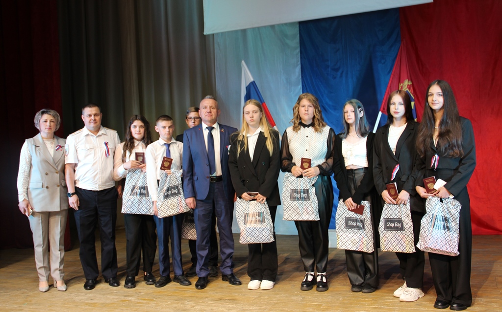 Сегодня, 12 июня, в День России свои первые документы получили восемь юных красногорцев. Вручение произошло в торжественной обстановке на сцене межпоселенческого культурно-досугового центра.