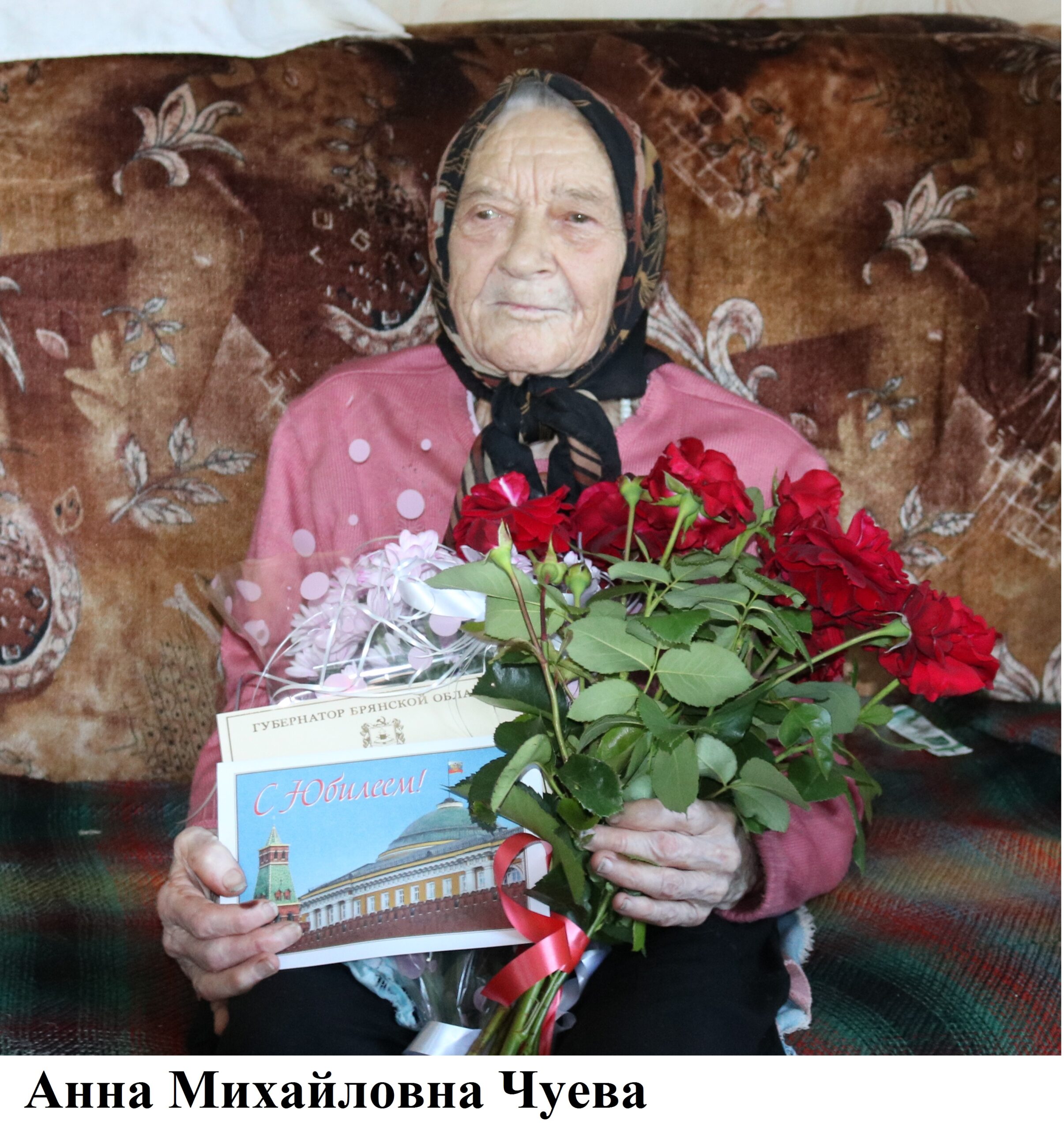 А.М. Чуеву с 95-летием 1 июля приехали поздравить В.А. Глушаков, заместитель главы администрации Красногорского района, Е.А. Варсеева, директор комплексного центра социального обслуживания населения, Н.А. Грибанова, заведующая отделением КЦСОН. Они сказали много добрых слов юбилярше, зачитали и вручили ей именные поздравления от Президента России В.В. Путина и Губернатора Брянской области А.В. Богомаза, подарили букеты цветов. К поздравлениям присоединилась и глава Перелазской сельской администрации С.Е. Горбачева, приготовившая юбилярше подарок. Гости желали ей здоровья, благодарили за труд на благо Родины. Анна Михайловна была растрогана таким вниманием и охотно поделилась со мной историей своей жизни.