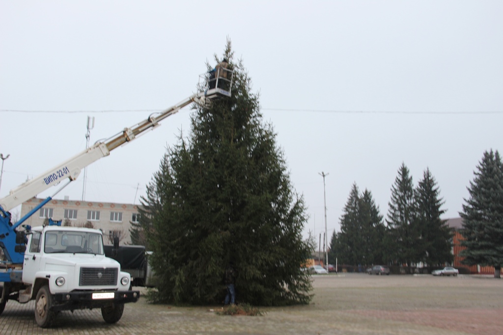 В брянской Красной Горе приступили к украшению новогодней ёлки