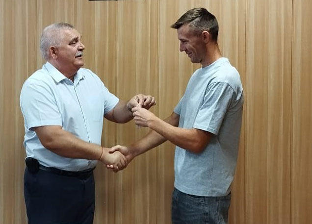 Глава администрации Красногорского района Сергей Жилинский поздравил с приятным событием Юлиана и его супругу Анастасию, вручил ключи от квартиры, пожелал молодой семье счастья.