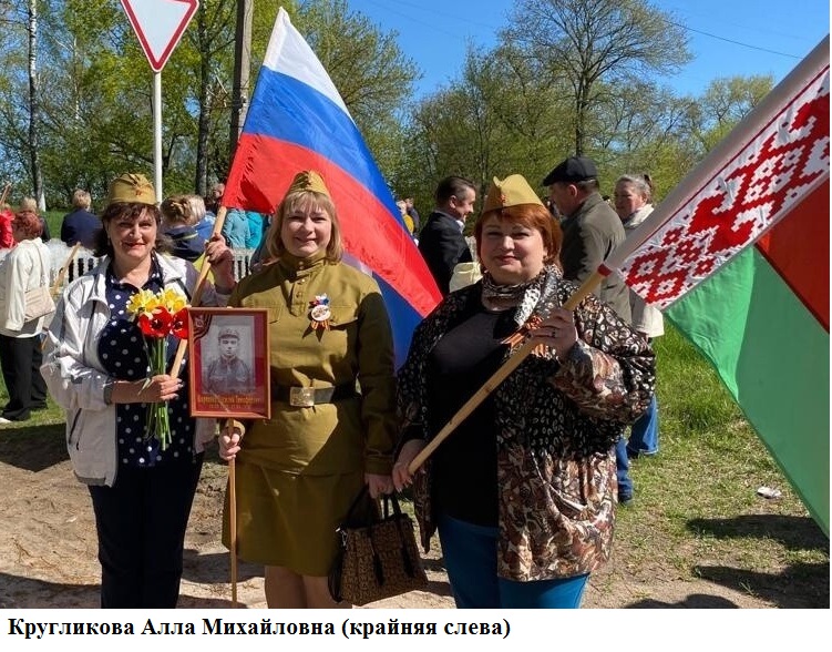 Сегодня мы поговорили с Аллой Михайловной Кругликовой. Родилась она в деревне Ленина Краснопольского района Могилёвской области Белорусской ССР (ныне Республика Беларусь). Окончила Могилёвский педагогический институт по специальности «учитель русского, белорусского языка». С июля 1990 года Алла Михайловна живёт в Красной Горе. Переехала она сюда, выйдя замуж. Много лет она трудилась учителем русского языка и литературы Палужскоруднянской школы, сейчас – в Красногорской СОШ №1. «Традиции и праздники у русских и белорусов схожи, ведь мы славянские народы, – отмечает моя собеседница. – Также отмечаем Новый год, Рождество, Пасху, 9 Мая и другие праздники. Знаю много народных песен на белорусском языке. Если говорить о предпочтениях в еде, то в нашей семье очень любят драники, вареники с картошкой и шкварками». В Красногорском районе, как отмечает Алла Михайловна, у неё много родных, друзей, знакомых. Но и свою родную Белоруссию она не забывает – в родительском доме сейчас живёт её брат со своей семьёй.