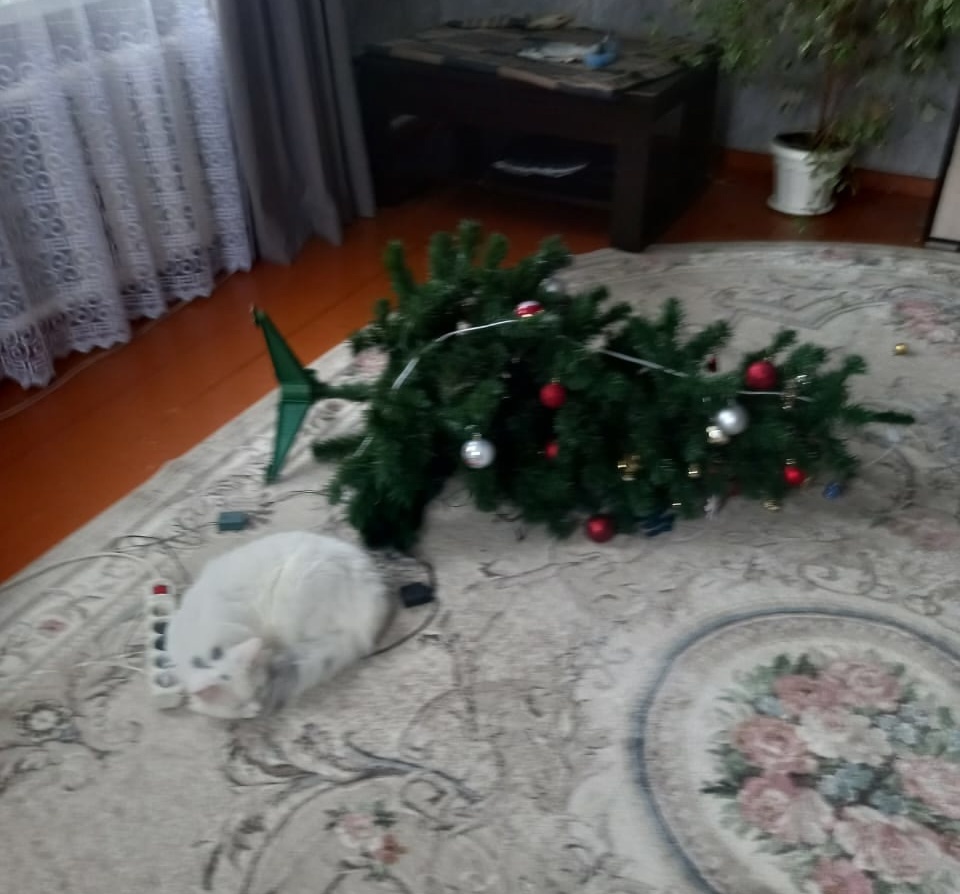 – Нарядно украшенная ёлка радовала нас все праздники. Игрушки, мишура и мерцающие гирлянды создавали уютную атмосферу. Но праздники подошли к концу. Убрать нарядную красавицу решили в выходные, но наш кот Кузьма, озорник и любитель приключений, решил иначе. Вернувшись с работы, я застал вот такую картину: поваленная ёлка, разбросанные игрушки и Кузьма довольный, уснувший рядом. Пришлось нам всё-таки разобрать ёлку раньше, чем планировали, – поделился историей снимка Александр.