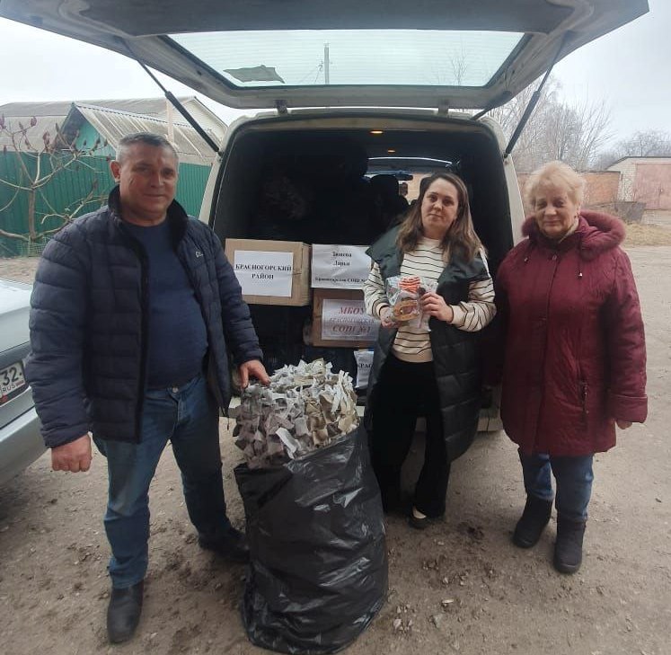 — Мы очень рады тому, что появились первые ощутимые результаты общего дела, направленного на оказание помощи нашим защитникам, и был скомплектован гуманитарный груз для отправки. В него вошли: маскировочные сети, повязки, тёплые носки, лекарственные препараты, домашняя консервация, сувениры и письма, сделанные руками школьников, сладости для наших солдат. Помощь отправлена в ближайшее приграничье: Трубчевский и Климовский районы и передана бойцам. Спасибо всем, кто не остался в стороне и оказал посильную помощь и поддержку. Хочется сказать также слова благодарности работникам администрации Красногорского района, библиотеки, районного отдела образования за оказанное содействие и помощь в плетении маскировочных сетей. Отдельное спасибо – женщинам, которые каждый день находят время и силы для плетения сетей, а именно: В.А. Кравцовой, В.В. Емельянцевой, Н.А. Мельниковой, Е.И. Суровой, Е.Г. Бычковой. Дорогие друзья, будем вместе до Победы! Присоединяйтесь к нам!
