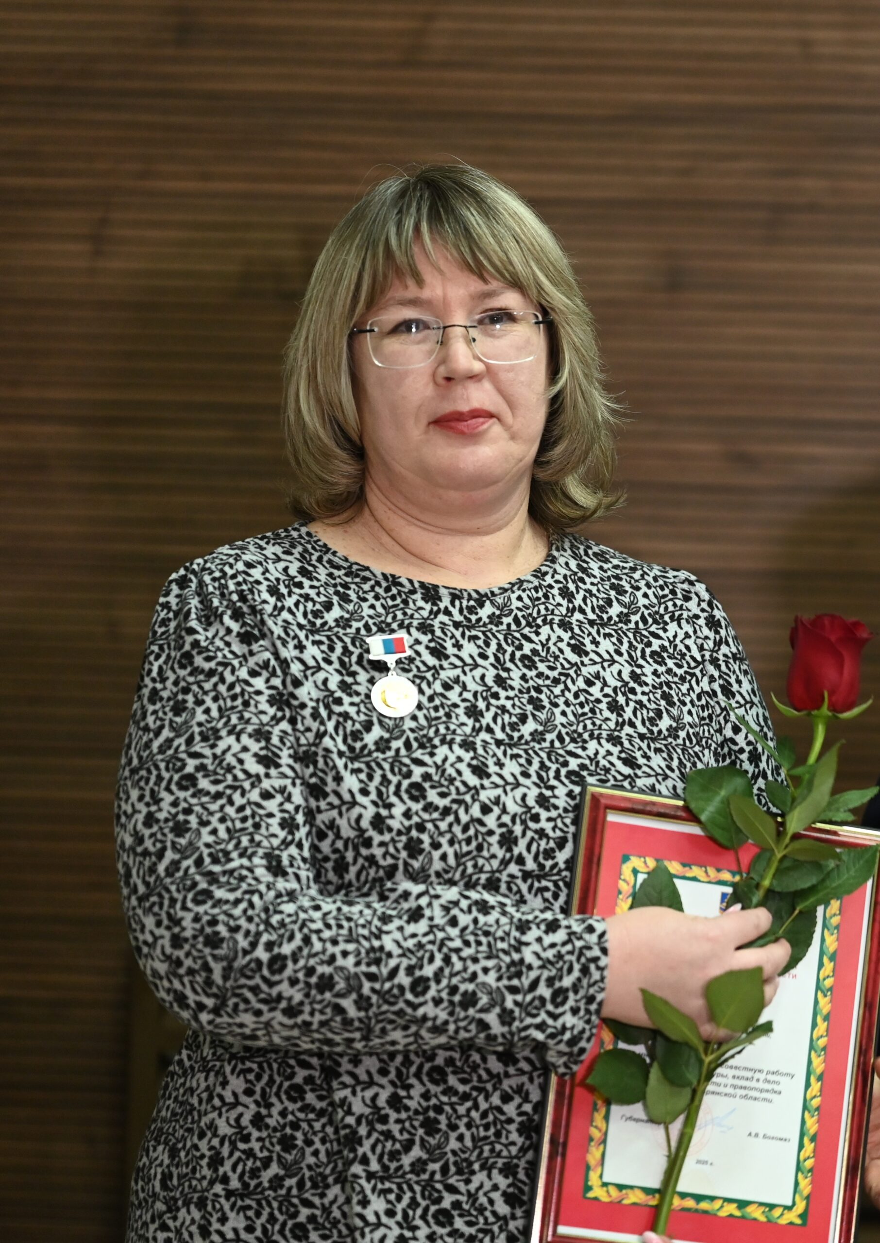Среди награждённых Почётной грамотой губернатора Брянской области в этом году и наша землячка Е.А. Артёменко. Этот снимок был сделан в Брянске во время торжественного мероприятия, посвящённого Дню работников прокуратуры Российской Федерации. В его ходе лучшим сотрудникам ведомства по традиции вручили награды. Елена Анатольевна является федеральным гражданским служащим, она ведущий специалист прокуратуры Красногорского района. В этой должности трудится девять лет. В работоспособном дружном коллективе зарекомендовала себя с наилучшей стороны. В её обязанности, в том числе входит ведение делопроизводства, составление и оформление документов, приём и распределение корреспонденции, обслуживание посетителей, работа с архивными документами.