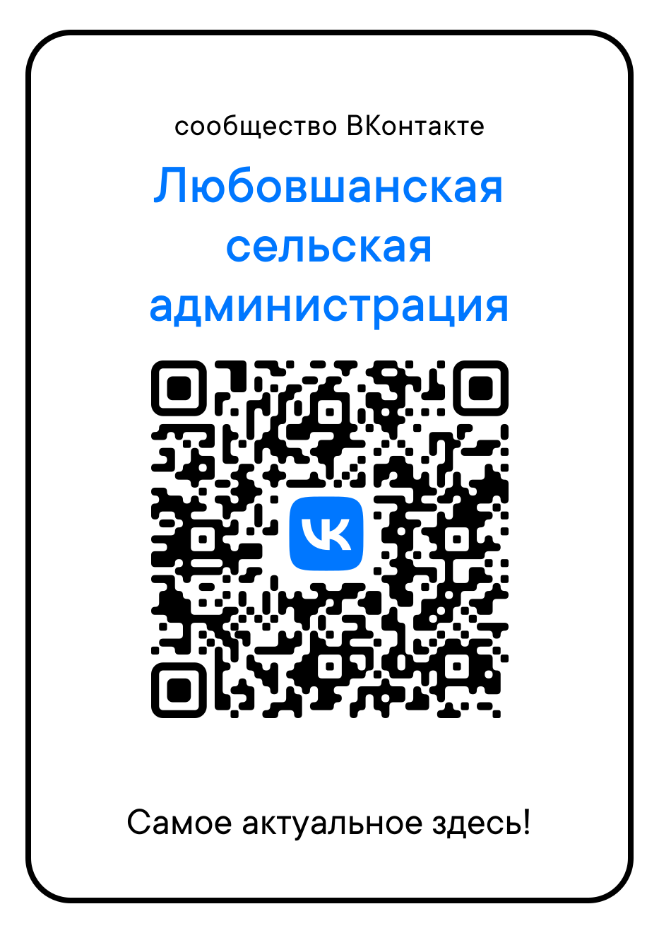 Государственные и муниципальные органы власти, госучреждения здравоохранения, культуры, образования, спорта – все направления и отрасли имеют подтверждённые через Госуслуги страницы в соцсетях. Удостовериться, что пользователь находится на официальной странице сообщества организации можно по специальной отметке в виде флажка и надписи «Госорганизация». Сегодня в номере – госпаблик Любовшанской сельской администрации.  Перейти на страницу можно  по QR-коду. Здесь вы можете узнать новости сельского поселения, актуальную информацию о работе учреждений на территории сельского поселения, объявления.