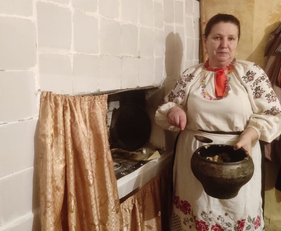 О Марии Васильевне Тикун, как и о других наших землячках, можно рассказывать до бесконечности, настолько они добрые, уважительные, трудолюбивые. Рассказать, как плачет над статьями в проекте нашей газеты «Живём и помним» Нина Ивановна Белозор, тоже живущая в Морозовке. Как с сестрой Валентиной выходили они аистёнка, а теперь ждут его весной. Как и в каком порядке содержат все они дома и огороды. Можно. Но просто посмотрите на эту фотографию, где Мария Васильевна в традиционной для этих мест одежде, доставшейся ей от бабушки, вынимает из русской печи чугунок с картошкой-жаренкой. Нет, она не позирует, она любуется своими односельчанами, что собрались все вместе на праздник, и хочет угостить их от души. И такое тепло идёт от её миловидного лица, что невольно улыбаешься в ответ. Вот она красота истинная! Что в глазах, в душе, во всём облике. Безыскусная, без этих по последней моде наведённых бровей и ресниц, но оттого, а может, и вопреки этому, не менее притягательная и манкая.