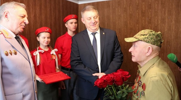 Глава Брянщины Александр Богомаз вручил медаль к 80-летию победы в Великой Отечественной войне ветерану Василию Копылову. Губернатор пожелал ему здоровья на долгие годы.