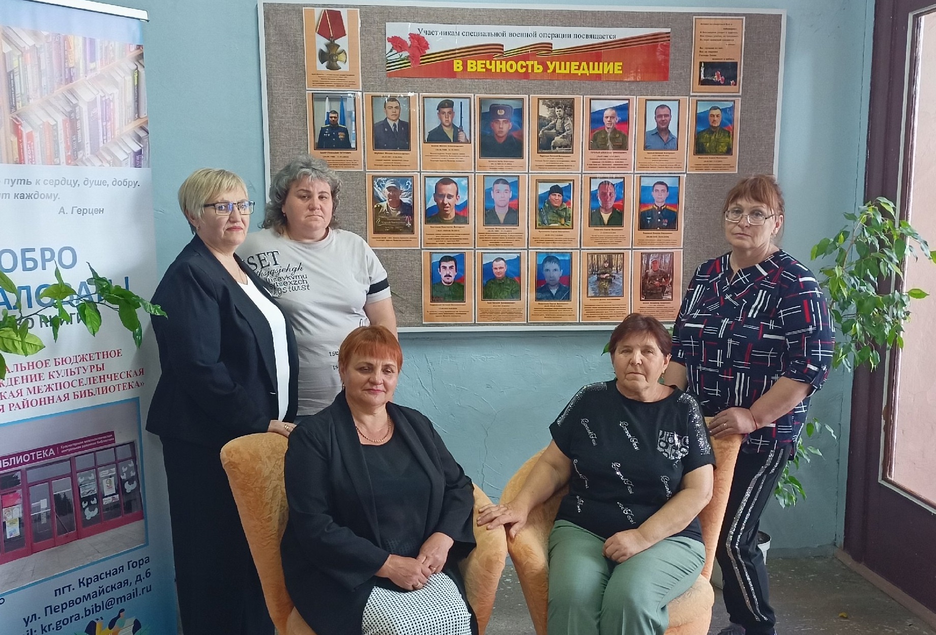 В Красногорской центральной районной библиотеке состоялась встреча социального координатора филиала государственного фонда «Защитники Отечества» в Красногорском и Гордеевском районах Надежды Лемзы и матерей солдат, погибших в ходе проведения СВО.