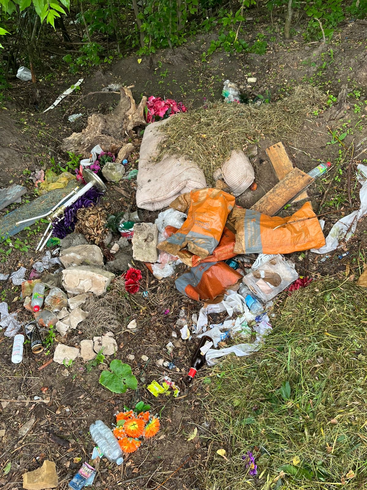 Это фотография была сделана на этой неделе возле кладбища, расположенного в пгт. Красная Гора по улице Центральной (микрорайон «Ширки»). Думается, что жители округи (а кто издалека сюда поедет или пойдёт?) вопреки тому, что кладбище было убрано, не считаясь с моральными принципами и чувствами других людей, ничего лучшего не придумали, как высыпать рядом с могилами усопших земляков «разнообразный» мусор. Не поленились привезти строительные отходы и даже… старый матрас! Люди, задумайтесь: куда это годится! Сколько можно одним убирать, а другим – тут же мусорить! Пока каждый не начнёт с себя, со своих близких, порядок поддерживать будет проблематично!