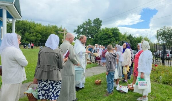 В конце богослужения было совершено молебное славление празднику, после чего был совешен чин освящения плодов нового урожая. Наливные яблоки и другие плоды, принесенные прихожанами, были окроплены святой водой.
