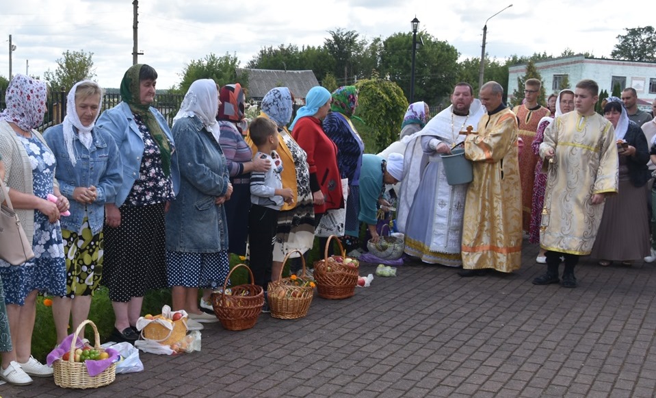 В Красной Горе в храме во Имя Святой Троицы настоятель храма протоиерей Александр Буденный совершил праздничное богослужение. По завершении божественной литургии состоялся водосвятный молебен. А затем отец Александр поздравил всех прихожан с праздником и освятил плоды нового урожая.