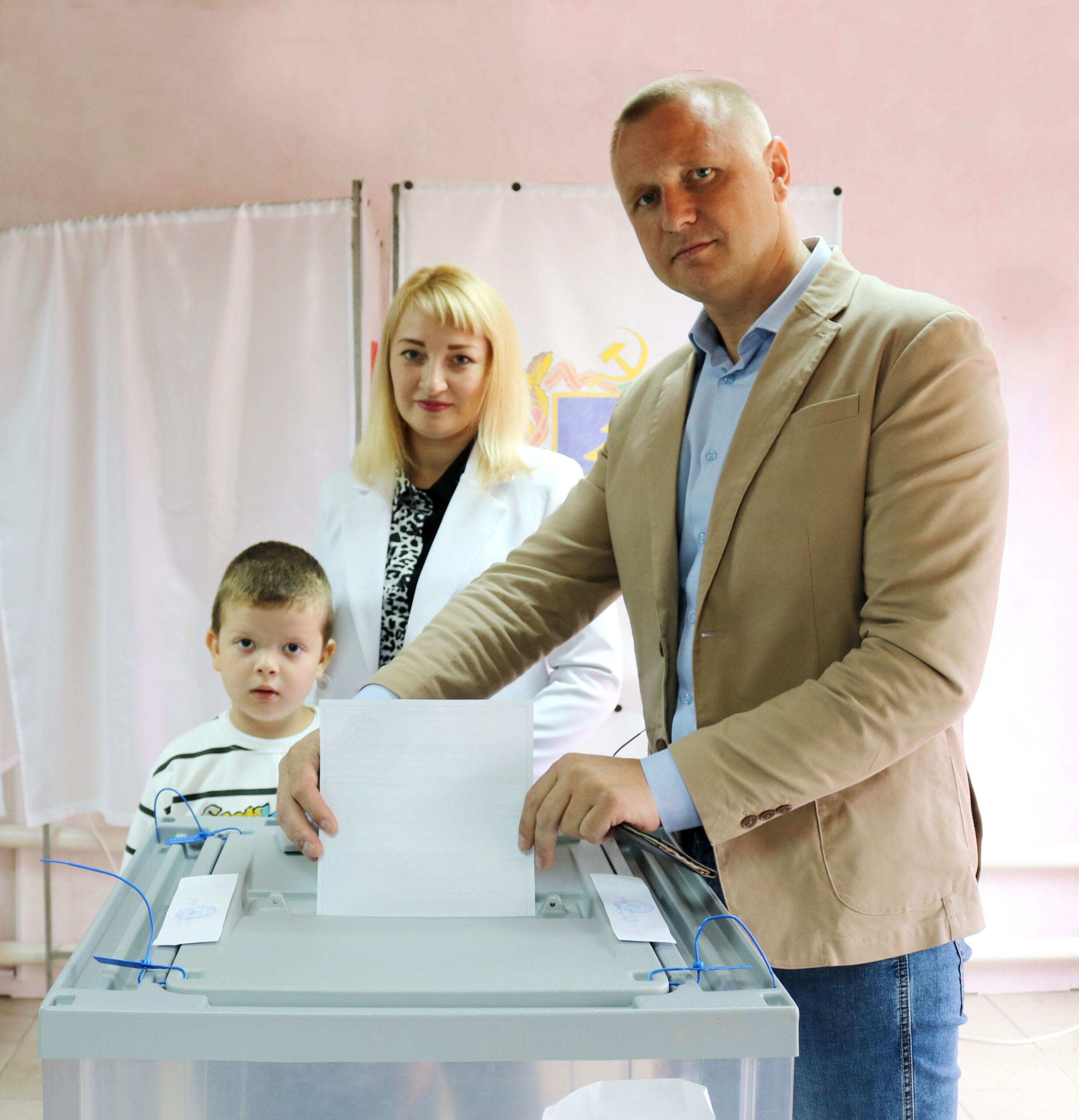 В Брянской области выбирают губернатора. Свой голос за одного из кандидатов отдал и депутат Красногорского районного Совета народных депутатов Роман Ефименко. Он пришел на участок вместе с супругой и сыном.