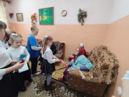 В преддверии 8 Марта активисты Красногорской средней общеобразовательной школы №1 посетили отделение временного проживания граждан пожилого возраста и инвалидов, где поздравили бабушек с праздником, вручив им открытки, сделанные своими руками, и сладости.