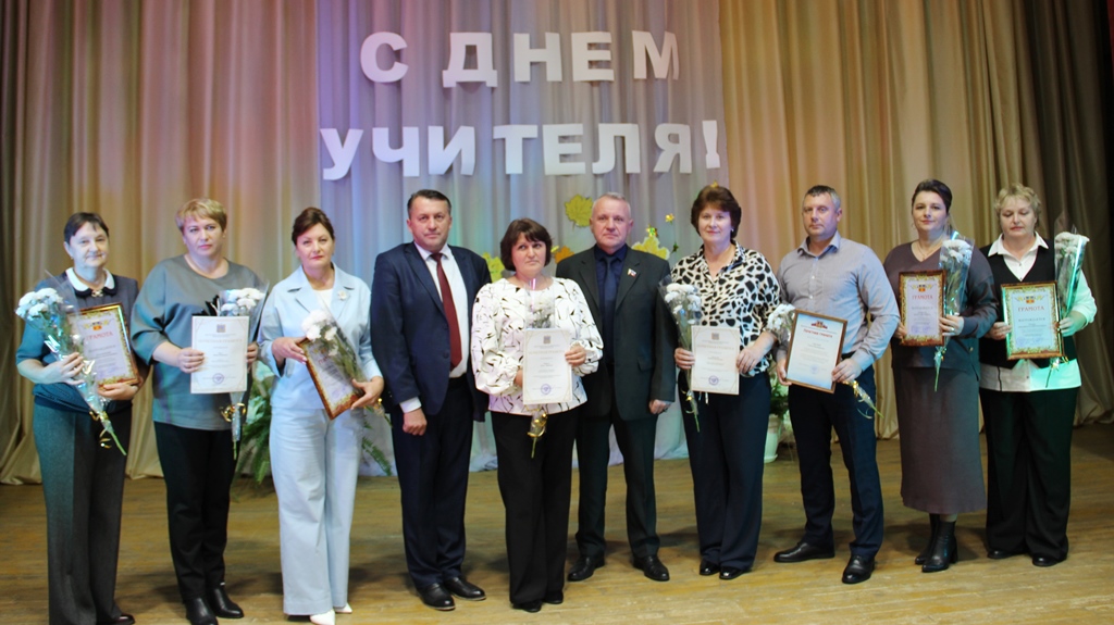 Поздравления прозвучали в ходе праздничного вечера, который прошёл в Красногорском межпоселенческом культурно-досуговом центре. Со сцены к собравшимся обратился глава района Сергей Степаниденко. В мероприятии, посвящённом Дню учителя, также принял участие врио главы администрации района Александр Рощин. В адрес учителей, педагогов дополнительного образования, воспитателей, руководителей и всех работников образовательных учреждений было сказано много душевных и искренних слов, наилучших пожеланий. Не обошлось и без торжественной церемонии награждений отличившихся в труде педагогов. Всем присутствующим в зале подарили позитив и хорошее настроение яркие концертные номера, с которыми выступили артисты творческого коллектива районного центра культуры из г. Костюковичи Могилёвской области Республики Беларусь.